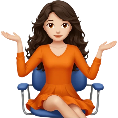 Long dark wavy hair women in orange top twirling around a chair emoji