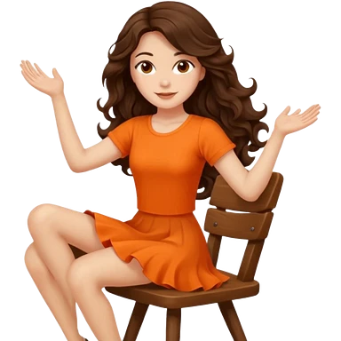 Twirling around a chair Long dark wavy hair women in orange top emoji
