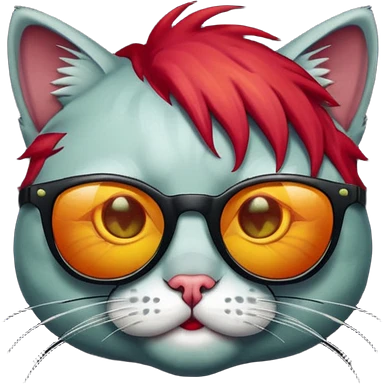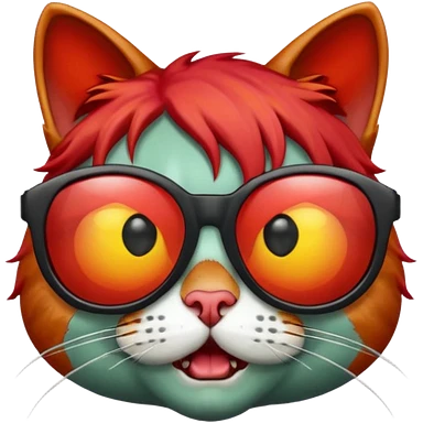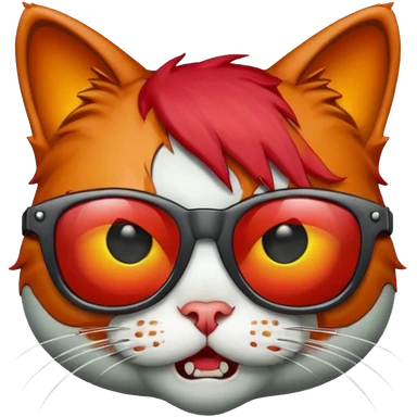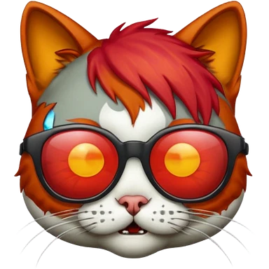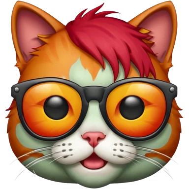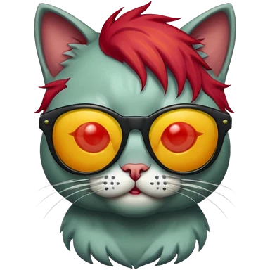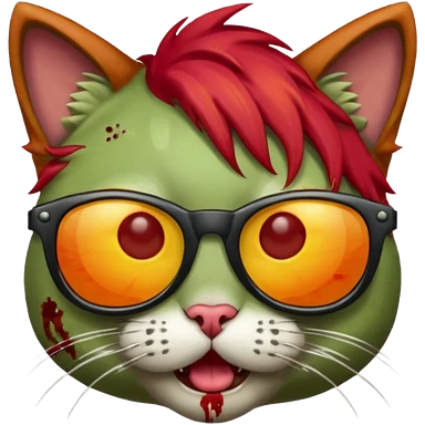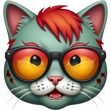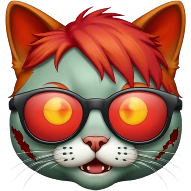 Zombie cat with red hair and sun glasses face emoji