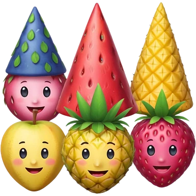 strawberry, blueberry, raspberry, banana, mango, pineapple pink lady apple having a party emoji