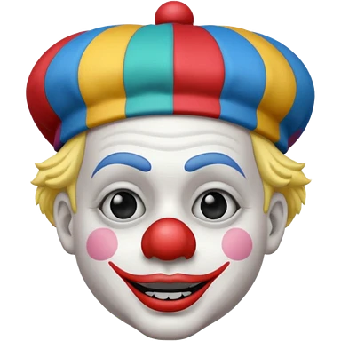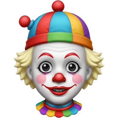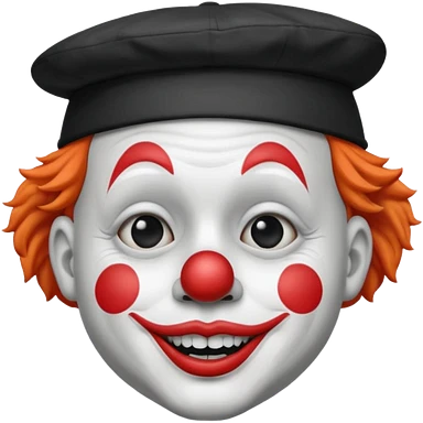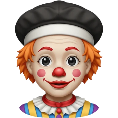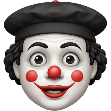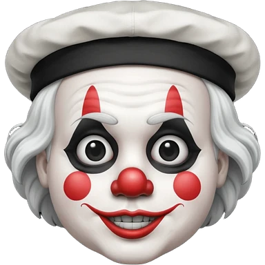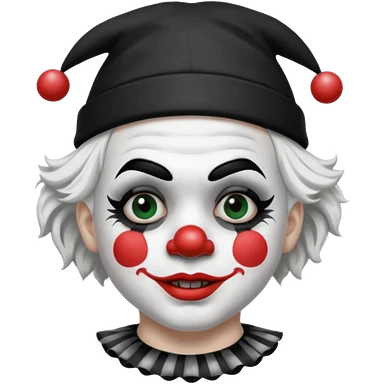 маленький озлобленный клоун в черно-белых тонах в маленькой шляпе-колпаке (никаких других цветов) черно-белое лицо, черно-белые волосы emoji