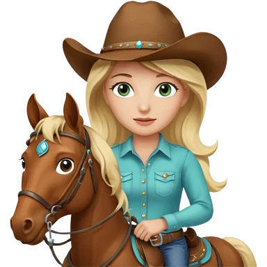 one blonde with light blue green eyes cowgirl on a horse emoji