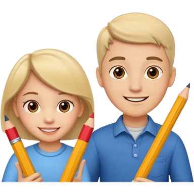 два любящих друг друга человека, мальчик светловолосый и девочк тое, мальчик чуть выше девочки и рядом их рыжий и немного полосатый кот emoji