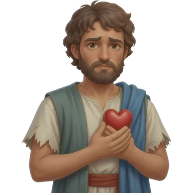 нарисую бедного молодого человека в рваной одежде, как он дарит свое сердце , времена древнего иерусалима emoji