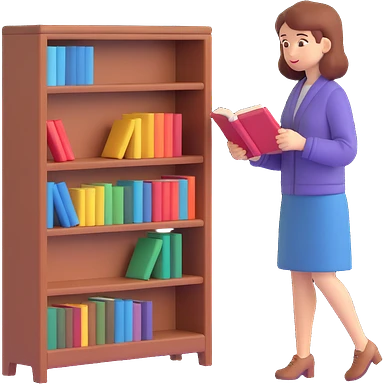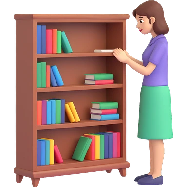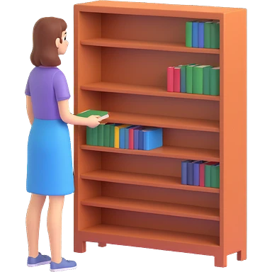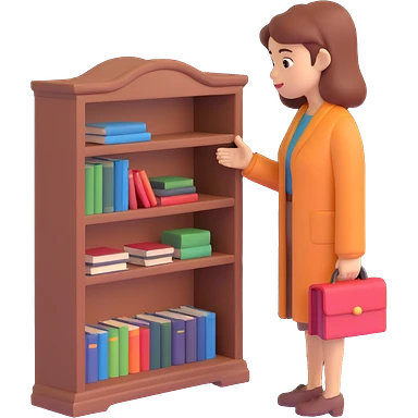 a woman looking at a small bookcase emoji