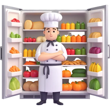 a chef in front of the fridge full of food emoji