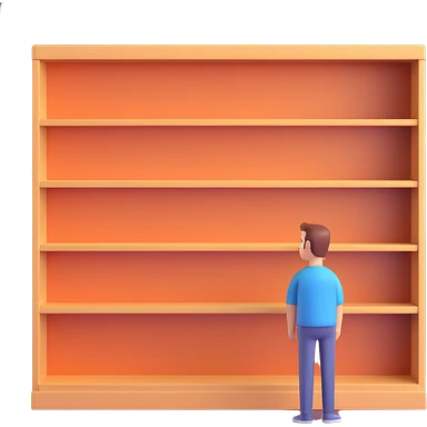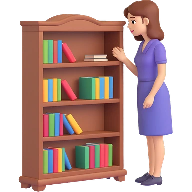 a sad woman looking at a small bookcase emoji