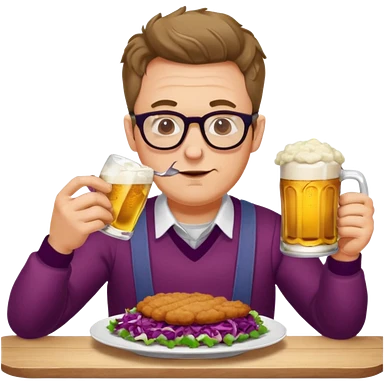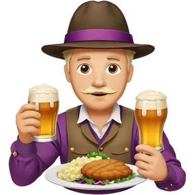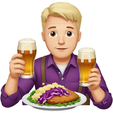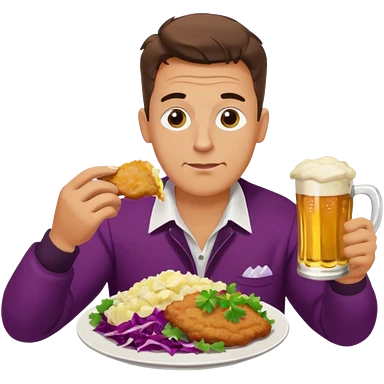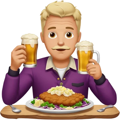 German man eating schnitzel, potato salad, red cabbage, sauerkraut, and beer emoji