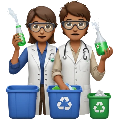an woman otter disguised as a man picking up trash bins, next to a mad scientist emoji