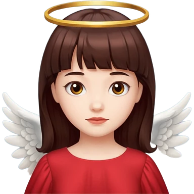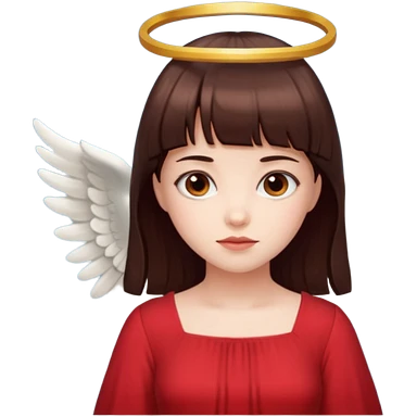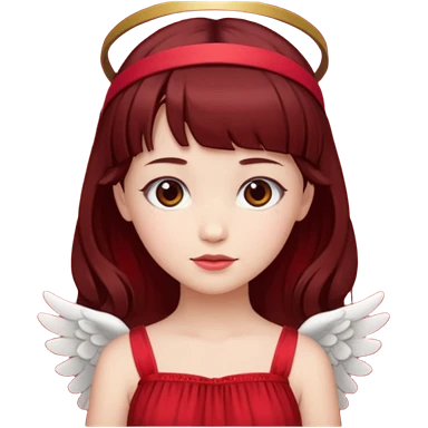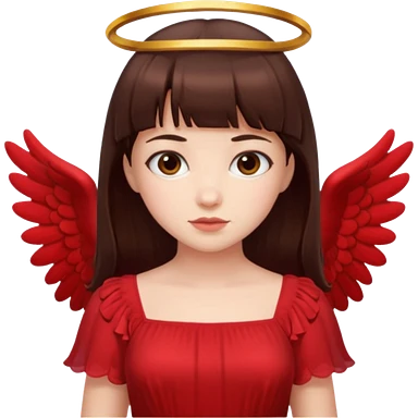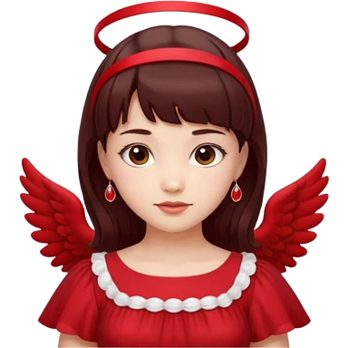 فرشته با موی چتری و لباس قرمز و موی خرمایی تیره و سربند یاقوتی emoji