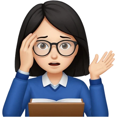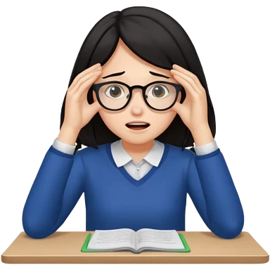 A dark-haired student panics during an exam, covering her face with her hands and not knowing what to do. emoji