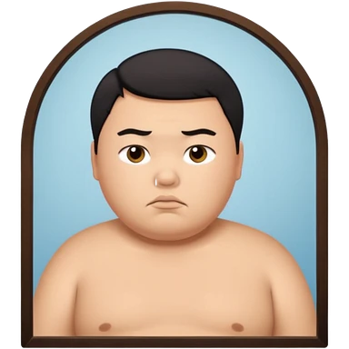 A young Asian guy has let his body go and is looking sadly in the mirror. emoji