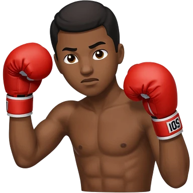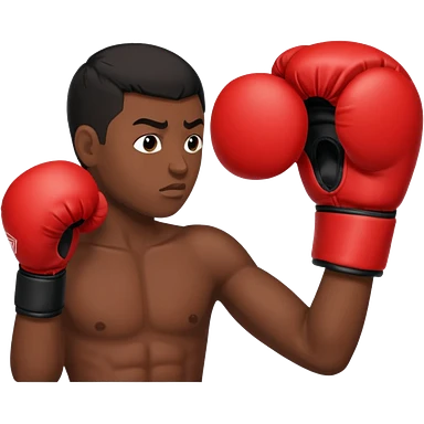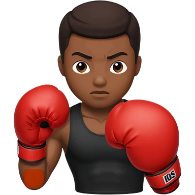 Девушка в чёрных боксёрских перчатках, в стойке, в синем спортивном топе и синих леггинсах, с каштановыми волосами, собранными в хвост, белой кожей и голубыми глазами emoji