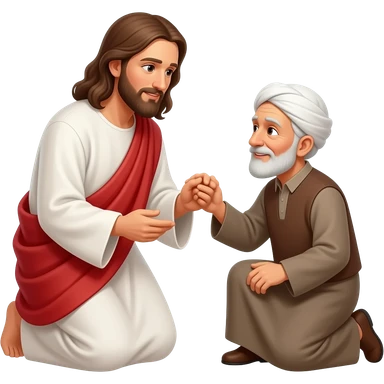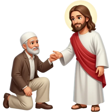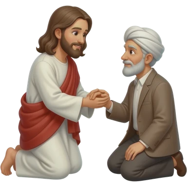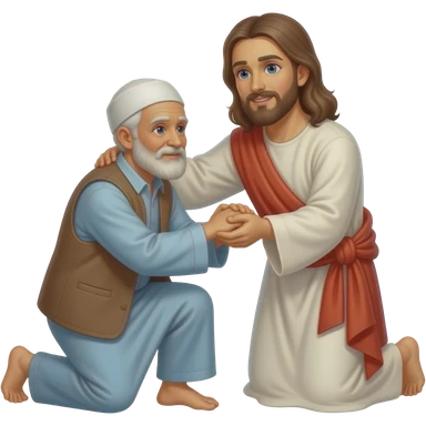 Иисус поднимате за руку с колен пожилого мужчину мусульманиа, мужчина без обуви emoji