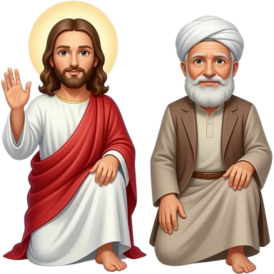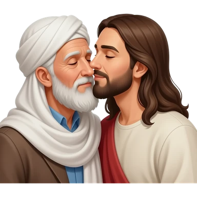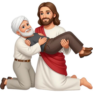 Иисус полнимает с Колен пожилого мужчину мусульманина emoji