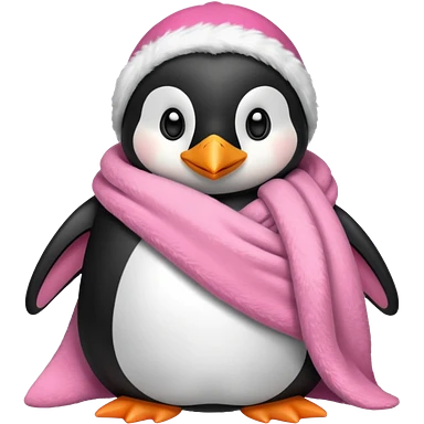 Ein Pinguin mit einer Kuschel Decke in Rosa der sich ein Kuschelt emoji