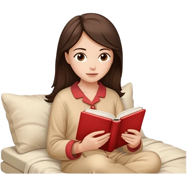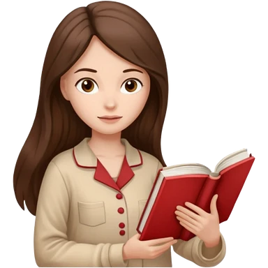 Девушка брюнетка с длинными волосами, карими глазами в пижаме с книгой. Картинка должна были в цветах: бежевый, бледно красный и коричневый emoji