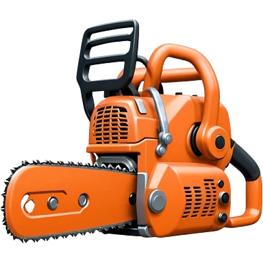 Kettensäge Stihl MS500i von der Seite, mit gut sichtbarem Stihl-Logo, orange-graue Farben, einfacher Emoji-Stil emoji