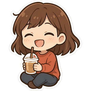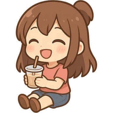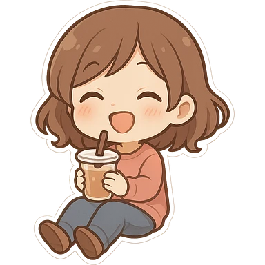 一个女孩开心地坐着,手里拿着一杯饮料 emoji