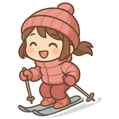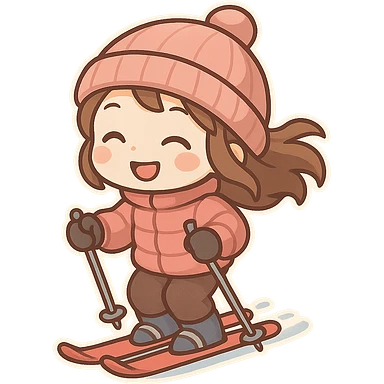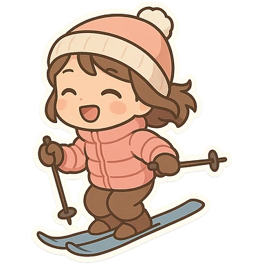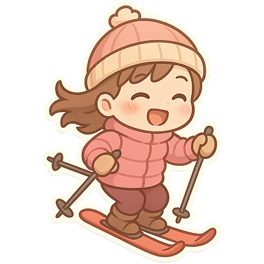 一个正在滑雪的小女孩,穿着粉色的羽绒服,戴着一顶可爱的小帽子,开心的滑雪 emoji