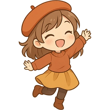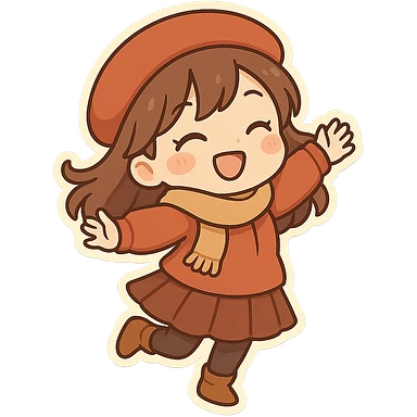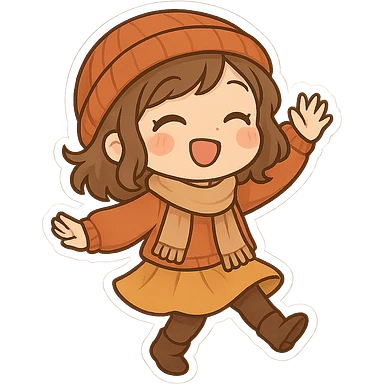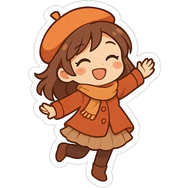 一个穿着秋季服装的女孩,开心欢快,跳舞 emoji