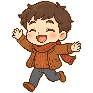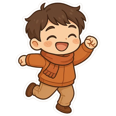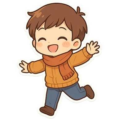 一个穿着秋季服装的男孩开心地跳舞 emoji