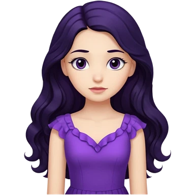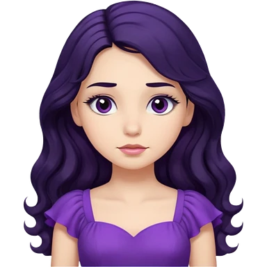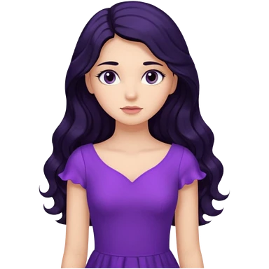موهاش بلند و موج دار مشکی باشه و اینکه مژه هاش یکم بلند باشه دخترکی با تیپ بنفش و حالت متفکر emoji | AI Emoji Generator