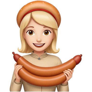 Мальчик с коричневыми длинными волосами ест сосиску emoji