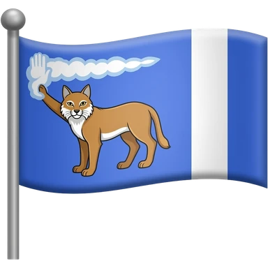 Флаг Псковской области. Флаг Псковской области — прямоугольное голубое (лазоревое) полотнище с изображением барса, правой длани (руки) из облаков и белой вертикальной полосой у древка emoji