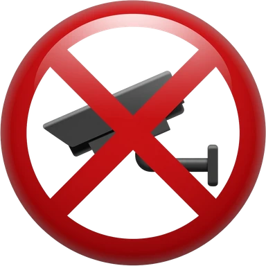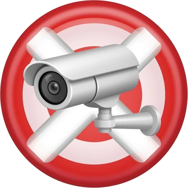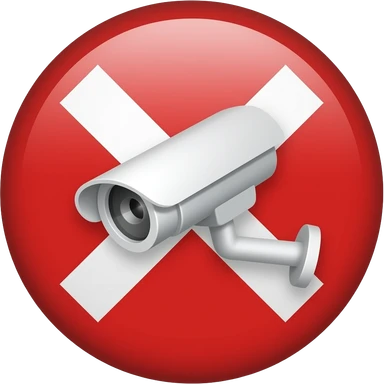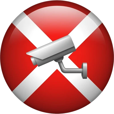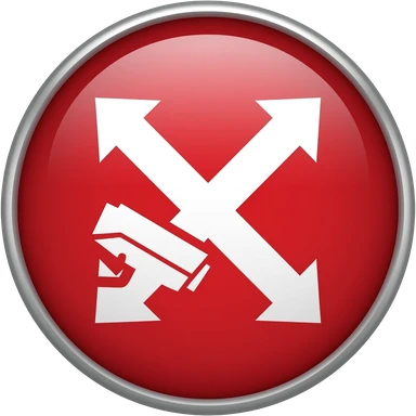 Red filled circle with white X and arrow end points on the X. CCTV in the centre emoji