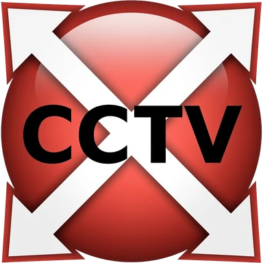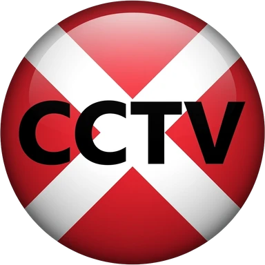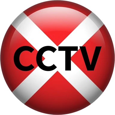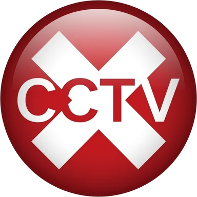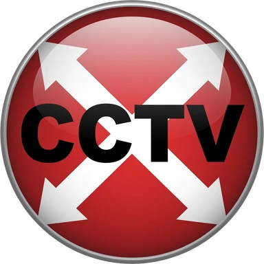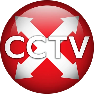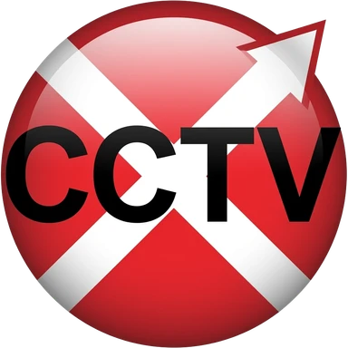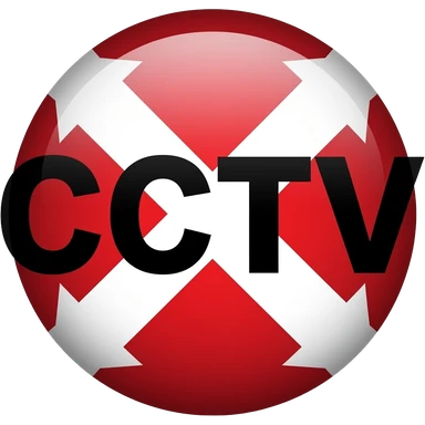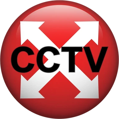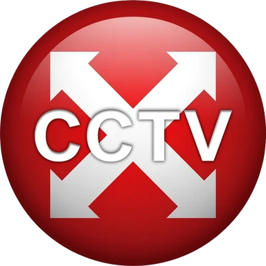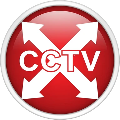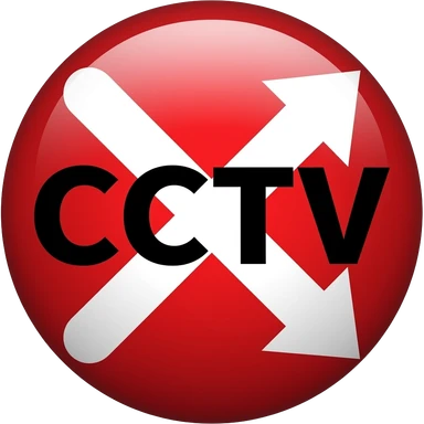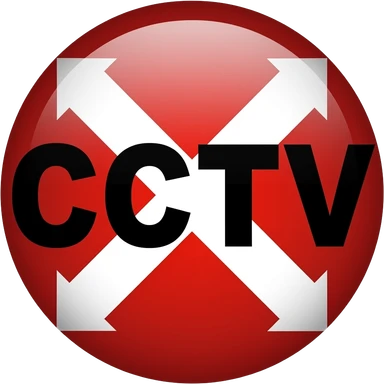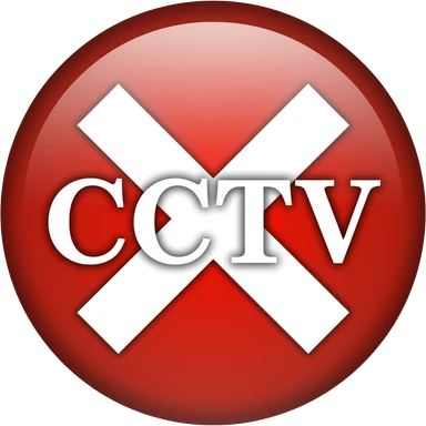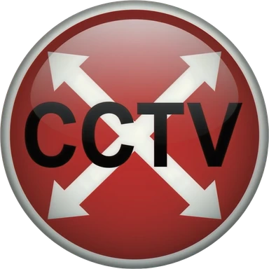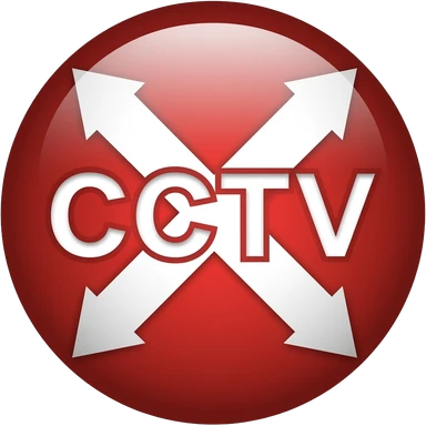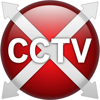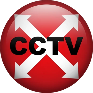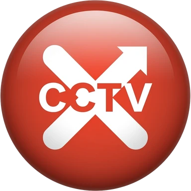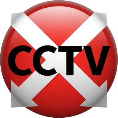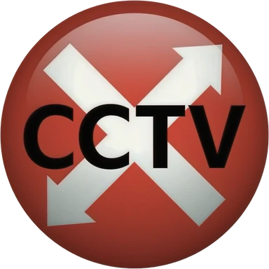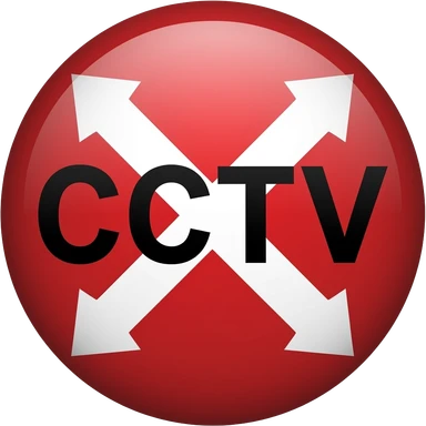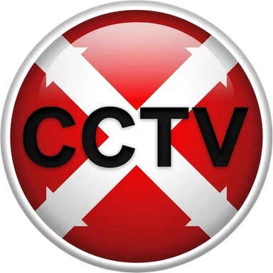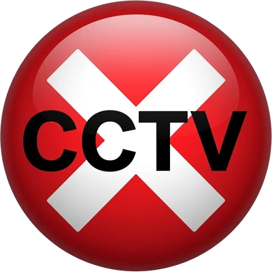 Red filled circle with white X and arrow end points on the X. Big CCTV word in the centre in black emoji