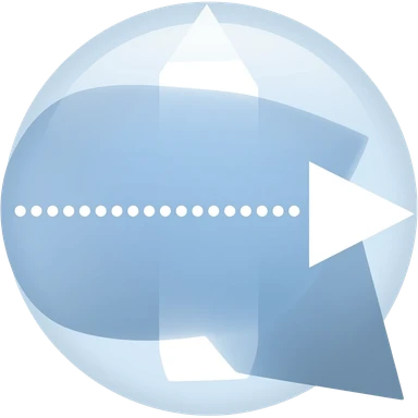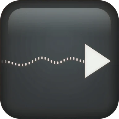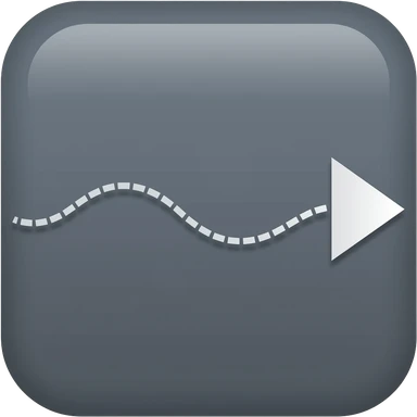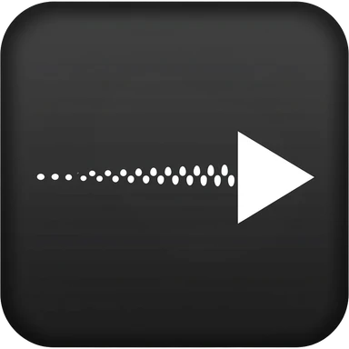 Flecha blanca con fondo negro. Sigue una trayectoria ondulada de onda sinusoide horizontal suave. trazado compuesto por una línea de puntos discretos y uniformes. Termina a la derecha con una punta de flecha triangular sólida y blanca. Composición vectorial minimalista emoji