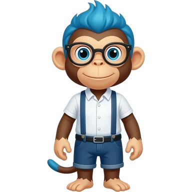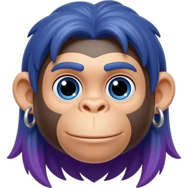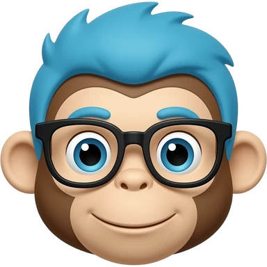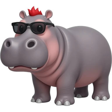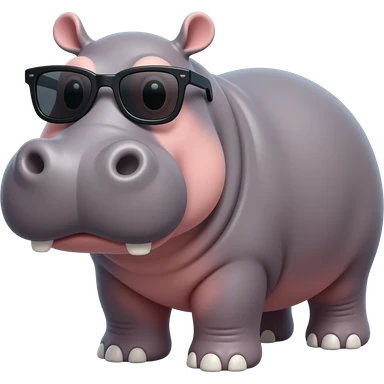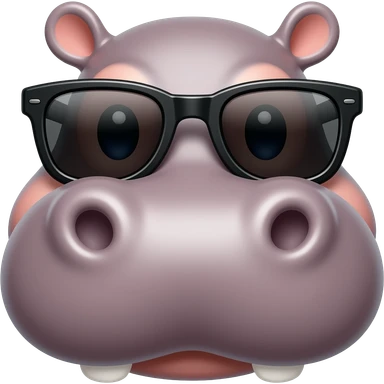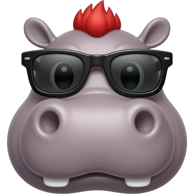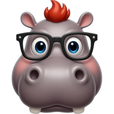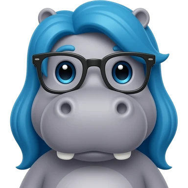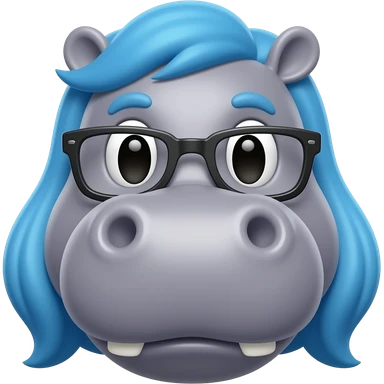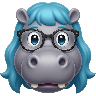 hippo with spectacles face front view and blue long hair and no eyebrows emoji