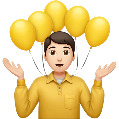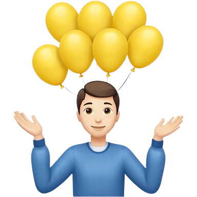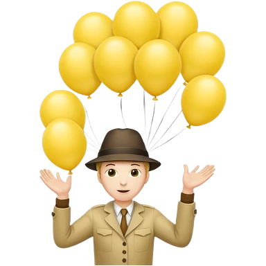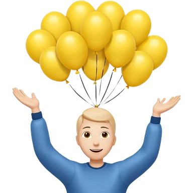 человек зацепился о шарики желтого цвета и летит вверх, видно только голову и шарики и руки emoji