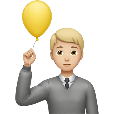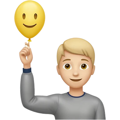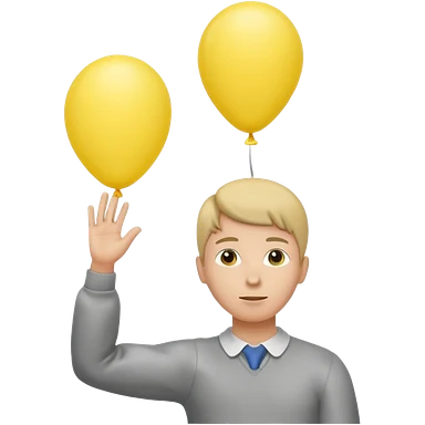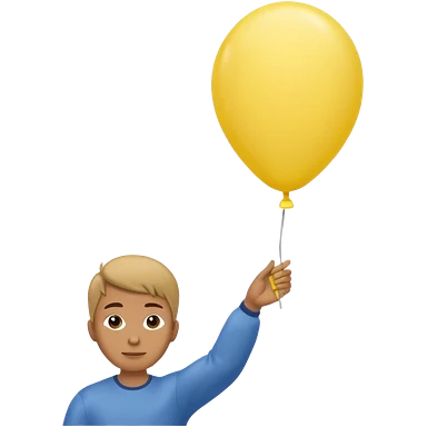 человек зацепился один шарик желтого цвета и летит вверх, видно только голову, руку с шариком emoji