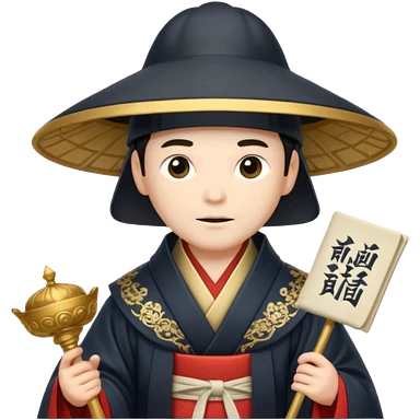 Elegant noble in long robes with tall hat, holding a scroll of orders. emoji