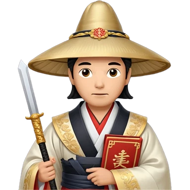Samurai lord, Elegant noble in long robes with tall hat, holding a scroll of orders. emoji