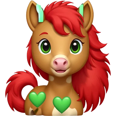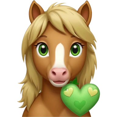 light brown pony with green eyes in love surrounded by red hearts emoji