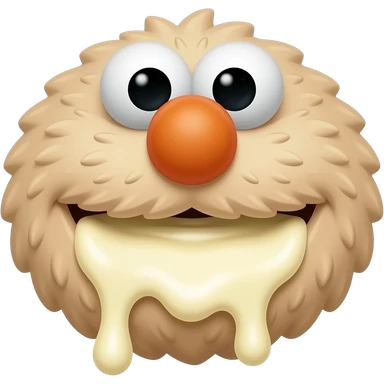 Mouth covered in cheesecake, Persona, portretu, cheese cake monster, similar to cookie monster, fur should be new york cheesecake it means beige emoji