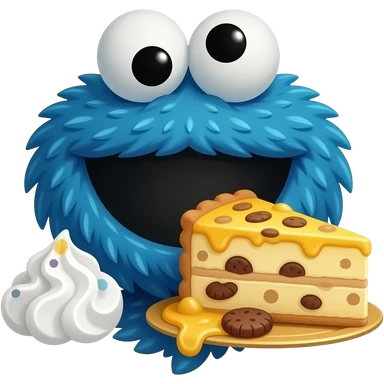 Persona, portretu, cheese cake monster, similar to cookie monster, fur should be new york cheesecake it means beige emoji