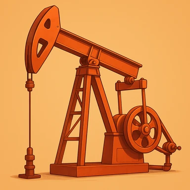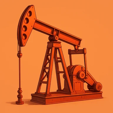Сгенерируй мне нефтекачалку в мультяшный реалистичный стиль, мягкий тёплый свет, чистые контуры, детализированный костюм, гладкая цифровая отрисовка, оранжево-красная цветовая палитра. На однородном фоне emoji