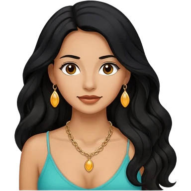 Mujer morena pelo ondulado negro largo emoji