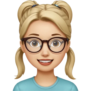안경쓰고 덧니있는 사람 여자 포니테일 emoji
