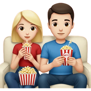 Crea un emoji dove un uomo e una donna mangiano i pop corn e guardano netflix emoji