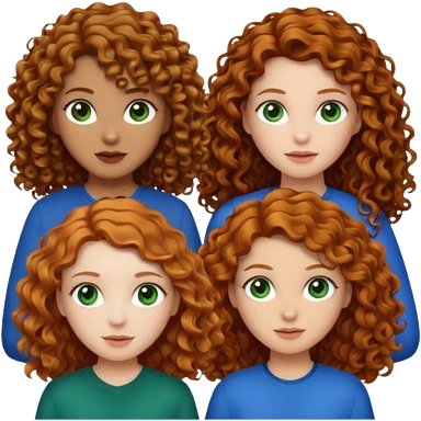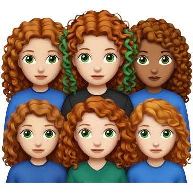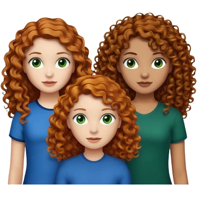 Make me 3 girls. One with medium size curly ginger hair, white skin and green eyes, one with long curly dark brown hair with a little just a little darker skin and brown eyes, and one with white skin and straight dark blonde hair and blue eyes emoji