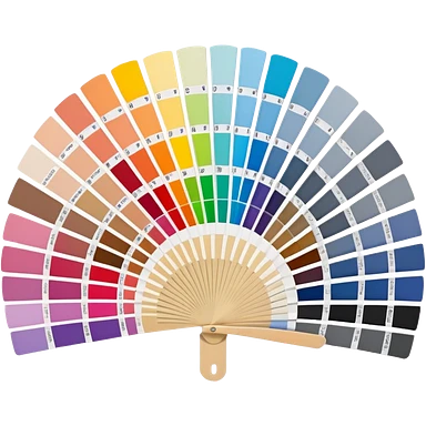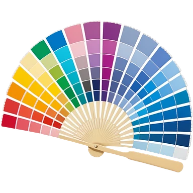 Pantone color swatch fan. The swatches should be fanned out, each with a different color. emoji
