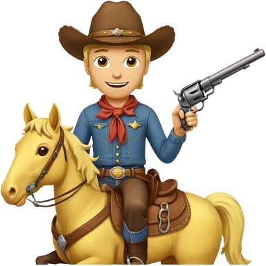 Cowboy riding a horse with revolver. Cowboy With yellow skin and smilling. Simplize it and I need a full pic with horse. Like I need the leg part too emoji