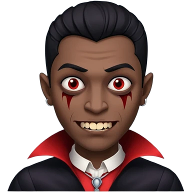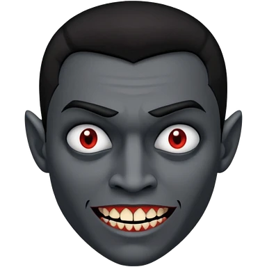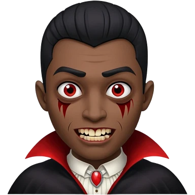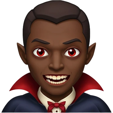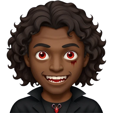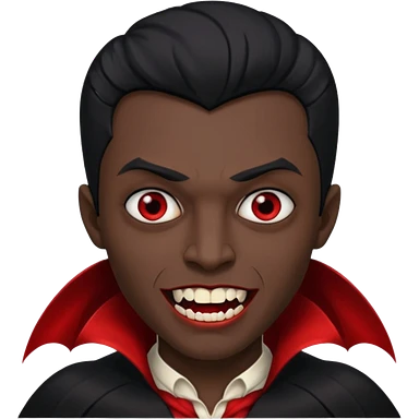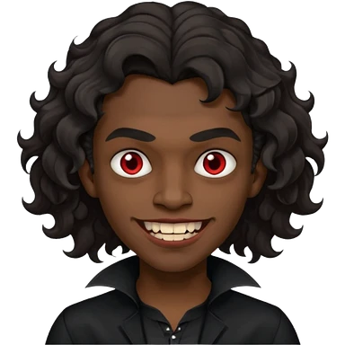 black skinned person with a black shirt on make the haircut have waves with vampire teeth emoji