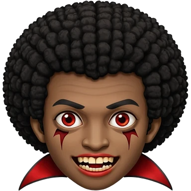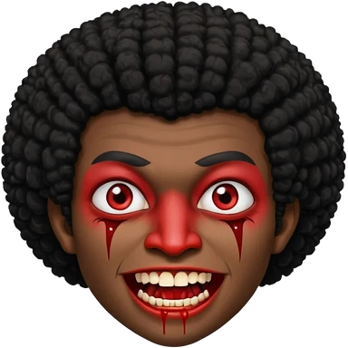 black skinned person with black hair afro with vampire teeth with cuts on their face emoji