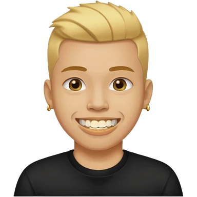lightskinned person with a taper fade haircut and golden teeth wearing a black tshirt with a white background emoji